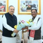 रायपुर. मुख्यमंत्री श्री विष्णु देव साय से आज राजधानी रायपुर स्थित मुख्यमंत्री निवास कार्यालय में छत्तीसगढ़ विधानसभा के अध्यक्ष डॉ. रमन सिंह ने सौजन्य भेंट की। इस अवसर पर विधान सभा अध्यक्ष डॉ. रमन सिंह ने मुख्यमंत्री श्री विष्णु देव साय को आगामी 1 नवम्बर को आयोजित होने वाले नवीन विधानसभा भवन के लोकार्पण