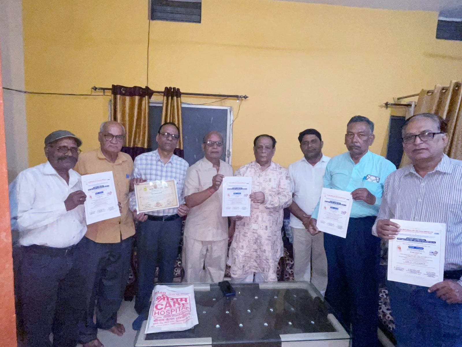 इस अवसर पर पद्मश्री पंडित मुकुटधर पाण्डेय जी की जयंती पर रायगढ़ में आयोजित अंतर्राष्ट्रीय कवि सम्मेलन में भाग लेने वाले डाॅ राघवेन्द्र कुमार दुबे, रमेश चन्द्र श्रीवास्तव, शीतल प्रसाद पाटनवार, शत्रुघन जैसवानी,एवं राम निहोरा राजपूत जी को मुख्य अतिथि डाॅ विनय कुमार पाठक द्वारा प्रमाण पत्र प्रदान किया गया ।