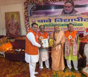 प्रयागराज . थावे विद्यापीठ का एक दिवसीय विशेष अधिवेशन कार्यक्रम, 22 फरवरी 2026, तीर्थराज संगम स्थली प्रयागराज के भजनानंद आश्रम में आयोजित हुआ जिसमें, एन डी ए, घटक दल “निषाद पार्टी” के राष्ट्रीय सचिव तथा छत्तीसगढ प्रभारी, साथ ही “छत्तीसगढ स्वराज सेना” संगठन के संगठक “श्री संजय सिंह राजपूत” जी को अपने क्षेत्र अर्थात् छत्तीसगढ़ में पिछड़े वर्ग के मान सम्मान व अधिकारों की रक्षा हेतु निरंतर सक्रिय रहने हेतु तथा सेवा कार्य करने हेतु समाज सेवा से संबद्ध छत्तीसगढ़ गौरव सम्मान प्राप्त हुआ, यह क्षण “श्रीमती नेहा सिंह राजपूत” जी तथा “श्री संजय सिंह राजपूत” जी द्वारा रचित ग्रंथ “21 वीं सदी के दृष्टिकोण से श्रीमद् भगवद् गीता” के विमोचन का भी साक्षी रहा, सभी मनीषी जनों ने पुस्तक में रचित सामग्री के कुछ अंश को पढकर भुरि-भुरि प्रशंसा की तथा अपना स्नेहाशिष टीकाकार “नेहा सिंह राजपूत” तथा सह टीकाकार “श्री संजय सिंह राजपूत जी” को प्रदान किया, इस अवसर पर थावे विद्यापीठ के कुलपति “डॉ विनय कुमार पाठक” जी, प्रति कुलपति महोदय, कुलाधिपति मंडलेश्वर श्री श्री हरिहरानंद जी महाराज, परम् संत मौनी बाबा तथा अन्य संत महंत इत्यादि, कुल सचिव “श्री सी. एस. दयाल यति जी” उपस्थित रहे तथा प्राप्त हुयी इस अविस्मरणीय उपलब्धि के साक्षी बने।
