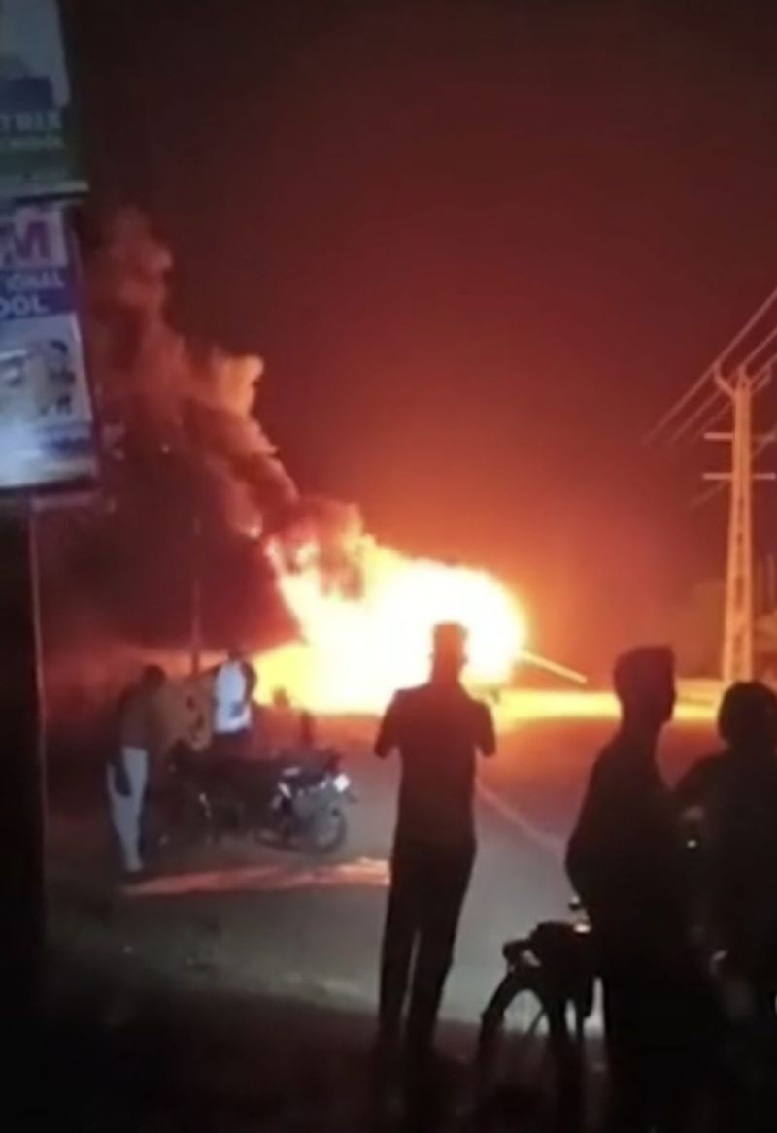 धमाके के साथ प्राइवेट बस बनी आग का गोला, दो जिंदा जले, 11 घायल