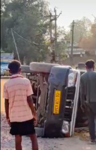एम्बुलेंस पलटी, चालक था शराब के नशे में धुत