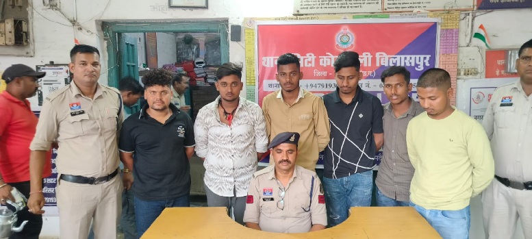 बिलासपुर. मामले का संक्षिप्त विवरण इस प्रकार है कि 02.04.26 को हनुमान जयंती रैली पर पुरानी रंजीश को लेकर दो पक्षों में मारपीट लडाई झगडा हुआ था जिस पर दोनों पक्षों के विरूद्ध अप. क्र.-218-2019/26 कायम कर थाना क्षेत्र में शांति, कानून व्यवस्था बनाए रखने हेतु वरिष्ठ अधिकारियों के मार्गदर्शन में लगातार अपराध व अपराधियों के अवैधानिक कृत्यों पर अंकुश लगाने त्वरित कार्यवाही की जा रही है इसी अनुक्रम में सिटी कोतवाली पुलिस द्वारा त्वरित कार्यवाही करते हुए उक्त अपराध के अनावेदगणों- सुजीत पाण्डेय, अमन उर्फ डिंपल, आयुष खटीक, चंदन खटीक, अभिषेक उर्फ अभी खटीक, रितीक खटीक, के विरूद्ध तत्काल प्रतिबंधात्मक कार्यवाही कर इस्त. क. – 57,58,59,60,61,62 / 25 धारा 170 / 126,135 बीएनएसएस के तहत 06 लोगों को गिरफ्तार कर न्यायालय पेश किया गया है।