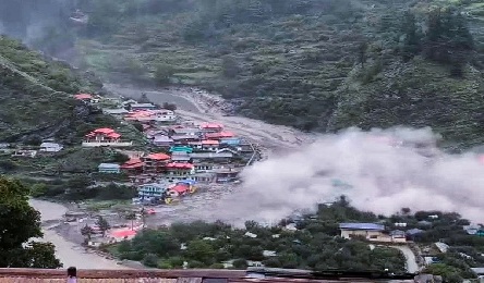 धराली में बादल फटने से गंगा नदी में बाढ़, भारी नुकसान