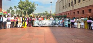 मौसम का मजा लीजिए… बैनर लेकर संसद परिसर में विपक्ष का प्रदर्शन