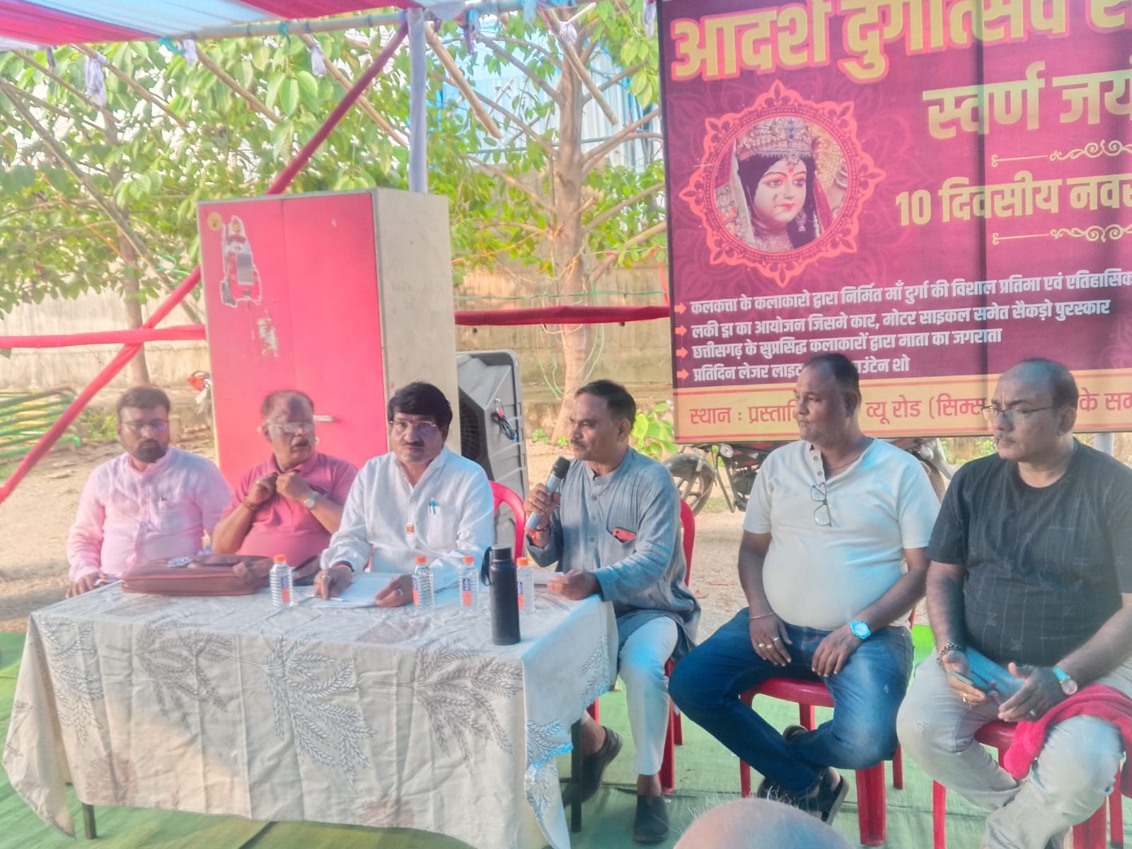 बिलासपुर। आदर्श दुर्गोत्सव समिति द्वारा 50वां वर्ष भव्य आयोजन किया जा रहा है। समिति के पदाधिकारियों ने आज नदी किनारे बनाए जा रहे भव्य पंडाल में पत्रकार वार्ता आयोजित कर जानकारी दी कि शहर में पहली बार मां दुर्गा की भव्य प्रतिमा स्थापित की जा रही है। 25 फीटशहर में पहली बार मां दुर्गा की भव्य प्रतिमा का दर्शन कर सकते लोग