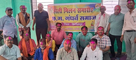 बिलासपुर. गंधर्व समाज के समस्त पदाधिकारियों ने सामाजिक भवन में धूमधाम से होली मिलन समारोह मनाया । इस दौरान सभी ने एक दूसरे को रंग गुलाल लगाकर सम्मान पूर्वक उत्साह मनाया। समाज के उत्थान के लिए एक जुटकर होकर काम करने का संकल्प भी लिया।