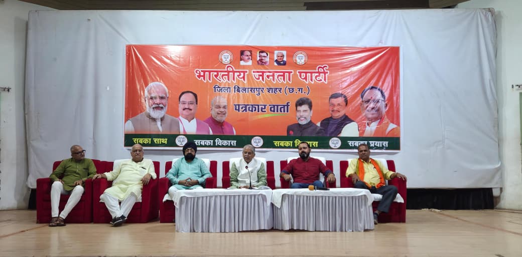 पत्रकार वार्ता में छत्तीसगढ़ राज्य अक्षय ऊर्जा अभिकरण के अध्यक्ष भूपेंद्र सवन्नी बिलासपुर जिला ग्रामीण के अध्यक्ष मोहित जायसवाल बिलासपुर जिला शहर के अध्यक्ष दीपक सिंह भाजपा के जिला कोषाध्यक्ष गुलशन ऋषि मीडिया के प्रभारी प्रणव शर्मा के के शर्मा सह प्रभारी दुर्गेश पांडे सोशल मीडिया संयोजक देवेश खत्री मंडल अध्यक्ष शैलेंद्र यादवकी उपस्थिति रही.