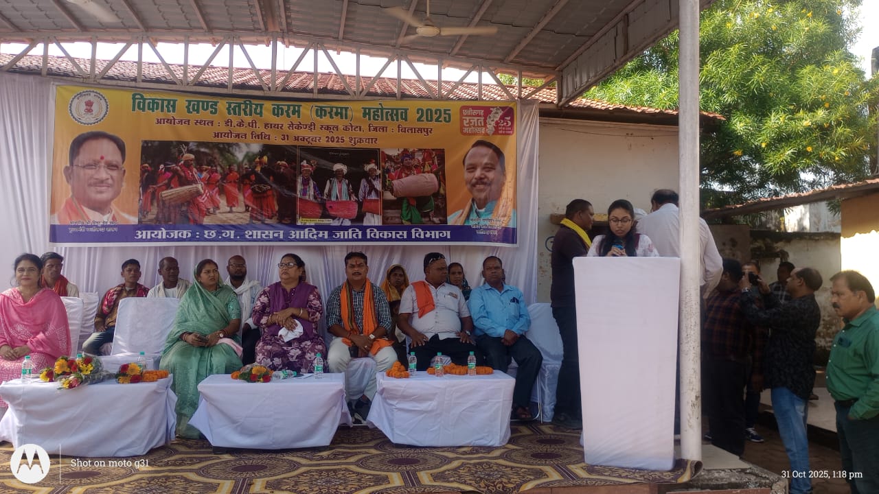 बिलासपुर. आदिम जाति तथा अनुसूचित जाति विकास विभाग द्वारा जिल में 1 अक्टूबर से 15 नवंबर 2025 तक करमा महोत्सव मनाया जा रहा है। महोत्सव के अंतर्गत विकासखण्ड कोटा में विकासखण्ड स्तरीय करमा प्रतियोगिता आयोजन किया गया। प्रतियोगिता में ़6 नर्तक दलों ने भाग लिया एवं उनके द्वारा मनमोहक करमा नृत्य एवं करमा गीतों की प्रस्तुति दी गई। जनजातीय लोक गायकों (गीतों) का प्रतिनिधित्व एवं जनजातीय समुदायों में प्रचलित परम्परागत वाद्य यंत्रों का प्रदर्शन किया गया।