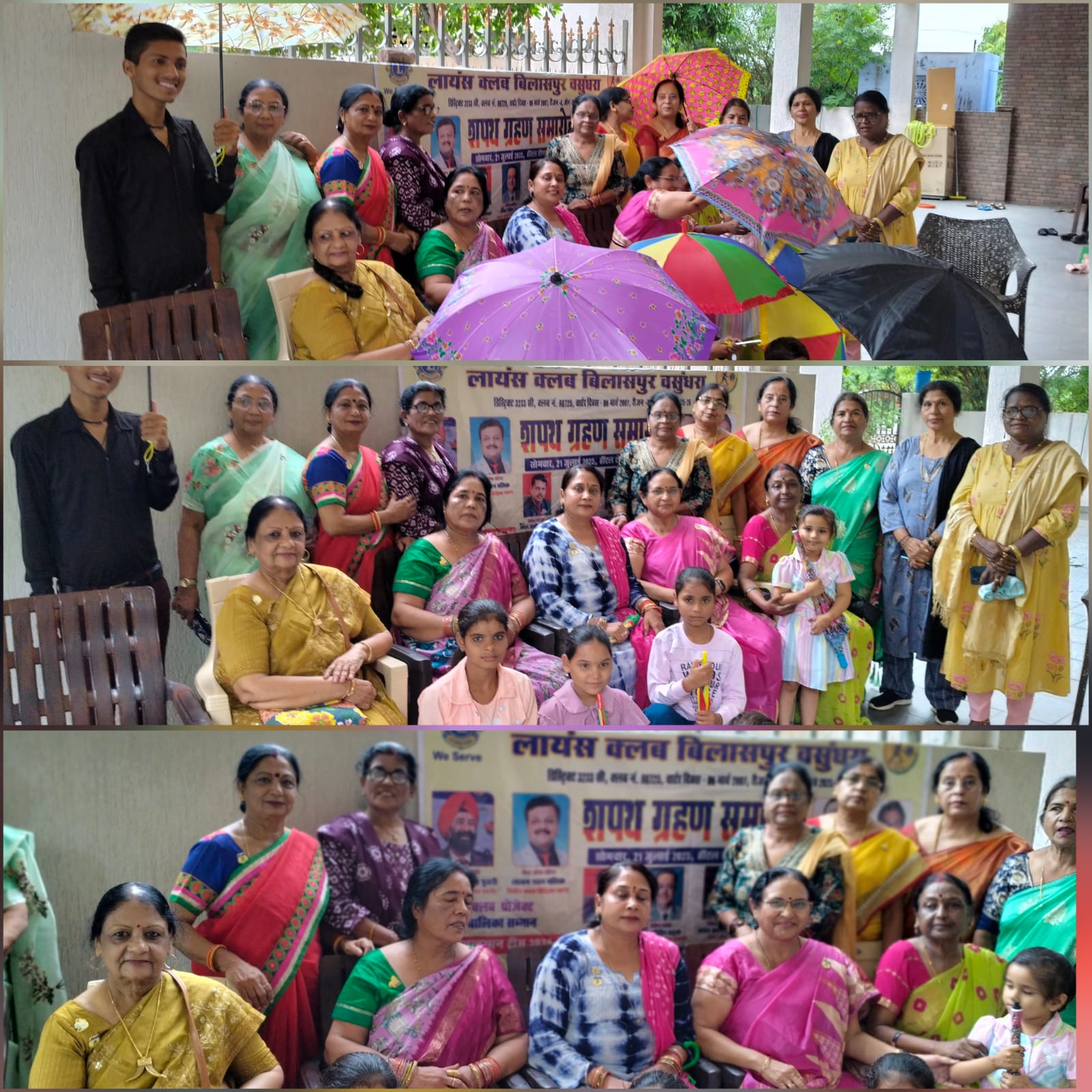 बिलासपुर. लायंस क्लब इंटरनेशनल बिलासपुर वसुंधरा क्लब ने अपनी आगामी सेवा गतिविधि के अंतर्गत क्लब प्रोजेक्ट बालिका सम्मान को ध्यान में रखते हुए बालिका सहयोग गतिविधि की जिसमें इन बारिश के मौसम में सरकंडा स्थित गरीब बस्ती की बालिकाओं एवं छोटे-छोटे बच्चों को छतरी का वितरण किया कार्यक्रम का आयोजन अध्यक्ष रश्मि लता मिश्रा ने किया जिनके मार्गदर्शन में छतरी वितरण में सहयोग रहा सचिव अर्चना तिवारी गायत्री कश्यप अध्यक्ष रश्मि लता मिश्रा जी एवं क्लब एडमिनिस्ट्रेटर मंजू तिवारी का उपस्थित सदस्यों में डिस्ट्रिक्ट चेयरपर्सन डॉक्टर शोभा त्रिपाठी डिस्ट्रिक्ट चेयरपर्सन सुधा परिहार, मंजू मिश्रा ,कोषाध्यक्ष विनीता मिश्रा, मंगला कदम ,सावित्री जायसवाल, शोभा चाहिल, मंजुला शिंदे, शारदा कश्यप, अनीमा मिश्रा,सीता तिवारी न्यू मेंबर