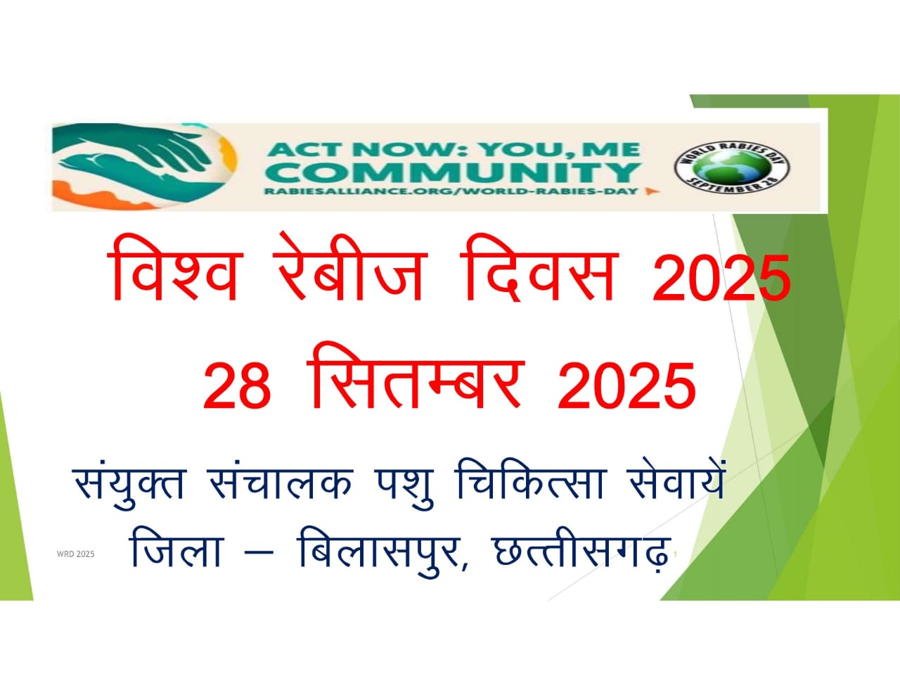 बिलासपुर. रजत जयंती महोत्सव एवं विश्व रेबीज दिवस 28 सितम्बर 2025 के आयोजन अंतर्गत पशुधन विकास विभाग बिलासपुर द्वारा कुत्तों व बिल्लियों में निःशुल्क एण्टी रेबीज टीकाकरण का आयोजन किया गया है। शहर के सिटी कोतवाली थाने के समीप स्थित शासकीय जिला पशु चिकित्सालय, बिलासपुर में इस दिन सवेरे 07 बजे से दोपहर 01 बजे तक मुफ्त में टीका लगाया जाएगा। इसके लिए डॉ. ज्योत्स्ना दुबे (9993846733) और