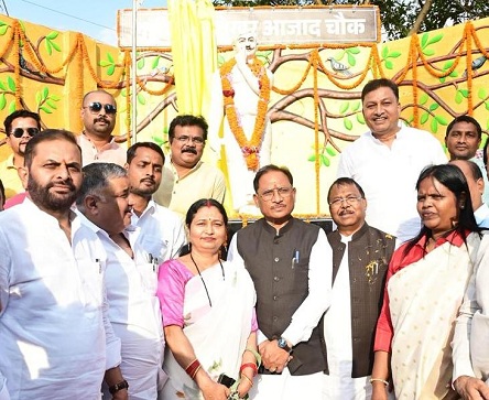 रायपुर. मुख्यमंत्री विष्णु देव साय ने आज सरगुजा प्रवास के दौरान अंबिकापुर के आकाशवाणी चौक पर माँ भारती के वीर सपूत, अमर क्रांतिकारी शहीद चंद्रशेखर आजाद की प्रतिमा का अनावरण किया। इस अवसर पर उन्होंने महान स्वतंत्रता सेनानी को श्रद्धांजलि अर्पित करते हुए उनके अदम्य साहस, त्याग और बलिदान को नमन किया।