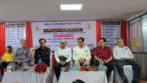 अध्यक्षीय उदबोधन में परिषद के राष्ट्रीय अध्यक्ष डाॅ.विनय कुमार पाठक पूर्व अध्यक्ष छत्तीसगढ़ राज भाषा आयोग एवं कुलपति थावे विद्यापीठ गोपालगंज बिहार ने कहा कि विकलांग चेतना परिषद् द्वारा जहाँ नि : शुल्क चिकित्सा शिविर का आयोजन किया जाता है वहीं सामूहिक आदर्श विवाह का आयोजन तथा रोजगार हेतु सार्थक प्रयास किया जाता है। सकारात्मक चेतना जागृत करने के लिए विकलांग विमर्श के माध्यम से पूरे देश में साहित्यिक अभियान शुरू किया गया है । विकलांग विमर्श को विश्व विद्यालय के पाठ्यक्रम में शामिल किया गया है और अनेक शोध किये जा रहे हैं ।