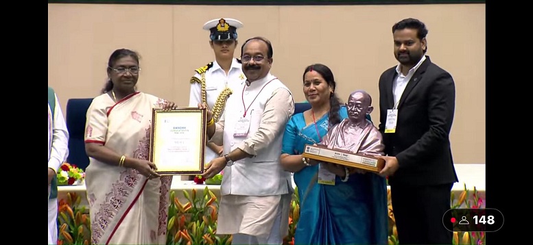 इसके लिए भारत के महामहिम राष्ट्रपति  द्रौपदी मुर्मू जी के द्वारा उपमुख्यमंत्री एवं विभागीय मंत्री  अरुण साव  अध्यक्ष नगर पंचायत बिल्हा वंदना जेन्ड्रे जी एवं मुख्य नगर पालिका अधिकारी बिल्हा प्रवीण सिंह गहलोत को मोमेंटो एवं सर्टिफिकेट देकर सम्मानित किया… पुरस्कार वितरण समारोह में केंद्रीय शहरी एवं आवासनमंत्री  मनोहर लाल खट्टर  एवं शहरी एवं अवासन राज्य मंत्री  तोखन साहू  विशेष रूप से उपस्थित थे.
