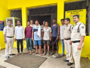 बिलासपुर. थाना प्रभारी कोनी निरी. राहुल तिवारी द्वारा थाना स्तर पर टीम तैयार कर भ्रमण कर चाकूबाजी,बदमाशों के ऊपर सतत निगरानी रखा जा रहा है.वरिष्ठ अधिकारियो के निर्देशों का पालन करते हुए दिनांक 09/08/25 को रात्रि 11:45-12:00 बजे asi अशोक चौरसिया एवं हमारह आर. 657 के चेक गस्त पर रवाना हुआ था जरिये मोबाइल सूचना मिला कि ग्राम सेमरताल में हर्ष यादव को जलसों के लड़के चाकू मार दिए हैं जिसे सिम्स अस्पताल बिलासपुर लेकर गए हैं सुचना पर सिम्स अस्पताल पहुंच कर आहत के भाई परदेसी यादव को पूछताछ करने पर बताया कि दिनांक 9/8/25 को रात्रि 11/45 से 12बजे के मध्य पुरानी रंजीश को लेकर आनंद वर्मा और साहिल वर्मा एवं उनके साथी मिलकर हत्या करने के नियत से बेल्ट एवं चाकू से सीने एवं पेट में मारकर प्राणघातक चोट पहुंचाये है. प्रार्थी के रिपोर्ट पर अपराध कायम कर विवेचना में लिया गया. दौरान आरोपी पताशाजी आरोपीगढ़ 1. राजीव वर्मा पिता स्वर्गीय संजय वर्मा उम्र 23 साल भूरी भाटा जलसों थाना कोनी जिला बिलासपुर 2. साहिल वर्मा पिता मूलचंद वर्मा उम्र 19 साल निवासी ग्राम जलसो थाना कोनी जिला बिलासपुर 3. लक्ष्मी प्रसाद केवट पिता रमेश केवट उम्र 19 साल भूरी भाटा जलसो थाना कोनी जिला बिलासपुर जलसो थाना कोनी जिला बिलासपुर 4. आनंद वर्मा पिता स्वर्गीय शिव प्रसाद उम्र 35 साल वर्मा ग्राम जलसो थाना कोनी जिला बिलासपुर 5. राजा वर्मा पिता भागवत वर्मा उम्र 25 साल निवासी वर्मा मोहल्ला ग्राम बिरकोना थाना कोनी बिलासपुर 6. राजेंद्र वर्मा पिता झड़ी वर्मा उम्र 23 साल निवासी वर्मा मोहल्ला ग्राम बिरकोना थाना कोनी बिलासपुर एवं