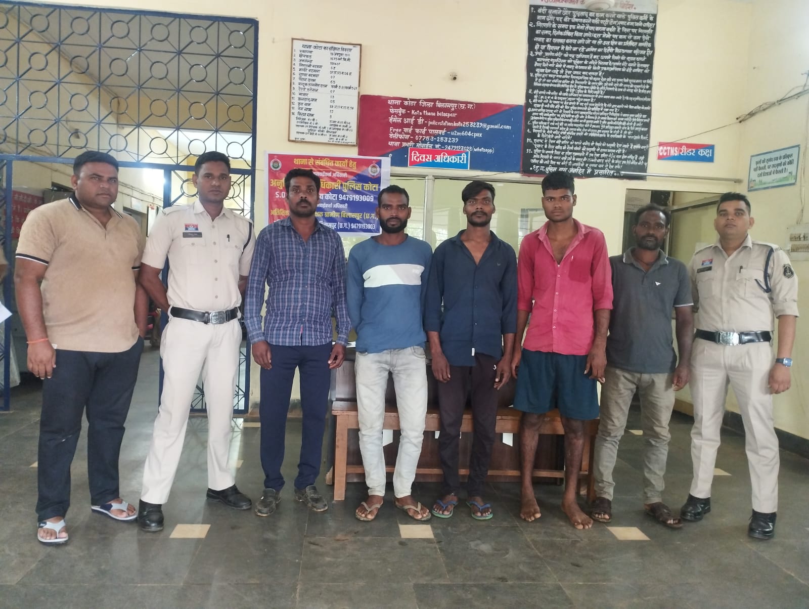 बिलासपुर. दिनांक 01.06.2025 को प्रार्थी विवेक देवांगन परिक्षेत्र अधिकारी कोटा (कोटा वन वृत) थाना उपस्थित आकर रिपोर्ट दर्ज कराया कि दिनांक 01.06.2025 को ग्राम सेमरिया में अवैध रूप से कुछ व्यक्ति सागौन लकड़ी की तस्करी कर रहे की सूचना पर वन विभाग की टीम के द्वारा छापामारी की कार्यवाही के दौरान आरोपियों के द्वारा गली गलौज कर जान से मारने की धमकी देते हुए शासकीय कार्य में बाधा डाला गया है कि रिपोर्ट पर अपराध दर्ज किया गया है। पुलिस कोटा के मार्गदर्शन पर फरार आरोपियों 01. दिनेश ध्रुव पिता अंधियार सिंह उम्र 24 वर्ष निवासी ग्राम सेमरिया थाना कोटा 02. नील कुमार घृतलहरे पिता मोहित राम उम्र 28 वर्ष निवासी ग्राम बांधा थाना तखतपुर 3. भुरवा उर्फ अंधियार सिंह पिता गोविंद सिंह उम्र 55 वर्ष 4. शकुन बाई गोड पति तम्पाल सिंह को पूर्व में गिरफ्तार कर न्यायिक रिमांड पर भेजा गया था । प्रकरण में विवेचना दौरान प्रकरण के फरार आरोपी 1. रामेश्वर बंजारे 2.प्रकाश मधुकर 3. पंकज खांडे 4.सनत मधुकर 5.धन्नू पाटले सभी निवासी ग्राम सेमरिया थाना कोटा को विधिवत गिरफ्तार करके न्यायिक रिमांड पर भेजा गया है।