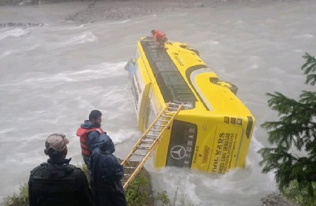जवानों को ले जा रही बस सिंध नदी में गिरी
