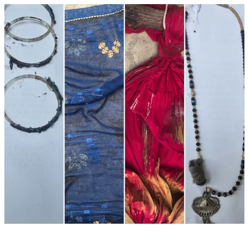 उसने नीले रंग की छीटदार (सिल्वर-गोल्डन प्रिंटेड) साड़ी, कत्थई-सिंदूरी रंग का पेटीकोट, नीली चुड़ियां और काला-पीला मोतियों वाला मंगलसूत्र पहना हुआ था, जिसमें एक ताबीजनुमा वस्तु बंधी हुई थी। इन वस्त्रों और आभूषणों के आधार पर पुलिस मृतका की पहचान करने में जुटी है। थाना प्रभारी संजय सिंह राजपूत ने बताया कि आसपास के थाना क्षेत्रों में दर्ज सभी महिला गुमशुदगी रिपोर्टों की जांच की जा रही है। पुलिस ने बिलासपुर जिले के साथ-साथ आसपास के जिलों के थानों को भी सूचना भेजी है।