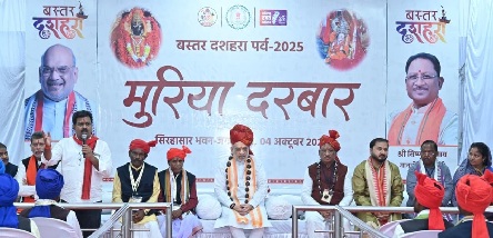 रायपुर. केंद्रीय गृह मंत्री अमित शाह और प्रदेश के मुख्यमंत्री विष्णु देव साय बस्तर दशहरा पर्व के अवसर पर जगदलपुर के सिरहासार भवन में आयोजित मुरिया दरबार में शामिल हुए। बस्तर की आराध्य देवी मां दंतेश्वरी के चित्र पर दीप प्रज्वलित करने के पश्चात केंद्रीय गृह मंत्री अमित शाह ने मांझी-चालकी से सीधा संवाद करते हुए बस्तर से माओवाद को समाप्त करने में सहयोग की अपील की। उन्होंने कहा कि माओवाद से जुड़कर हथियार उठा चुके बच्चों को समझाएं कि वे मुख्यधारा में लौटें और शासन की योजनाओं का लाभ लें।