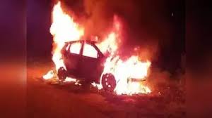 टक्कर मारने के आरोप में युवकों ने कार में लगाई आग