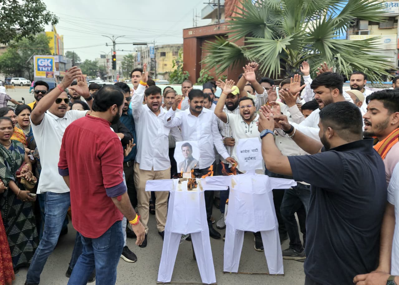 युवामोर्चा ने कांग्रेस और राहुल गांधी का फूंका पुतला